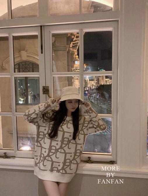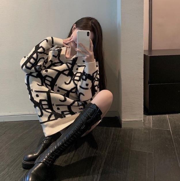 モノグラム柄の秋冬らしい配色がお洒落な愛されニットトップス