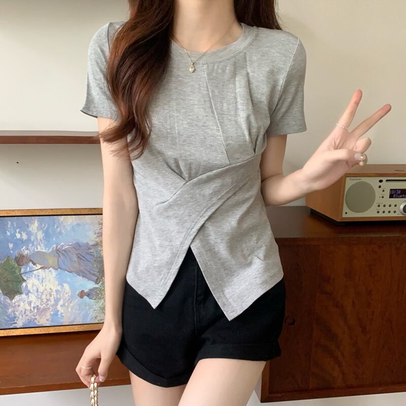 個性的 トップス Tシャツ 白トップス 袖あり 半袖 Uネック スリット かわいい 大人可愛い シンプル カジュアル 大人 おしゃれ かっこいい 大人女子 こなれ感 ラフ クール モード系 モダン 主役級 存在感 無地 春 夏 10代 20代 30代 40代 レディース ママ 通勤 通学 デート お出かけ 公園デビュー 女子会 お泊まり 休日 旅行 着回し 普段使い ファッション コーデ スタイル 楽ちん モテ L XL 2XL 3XL 4XL 色展開 ホワイト ブラック グレー カラバリ 大人カラー