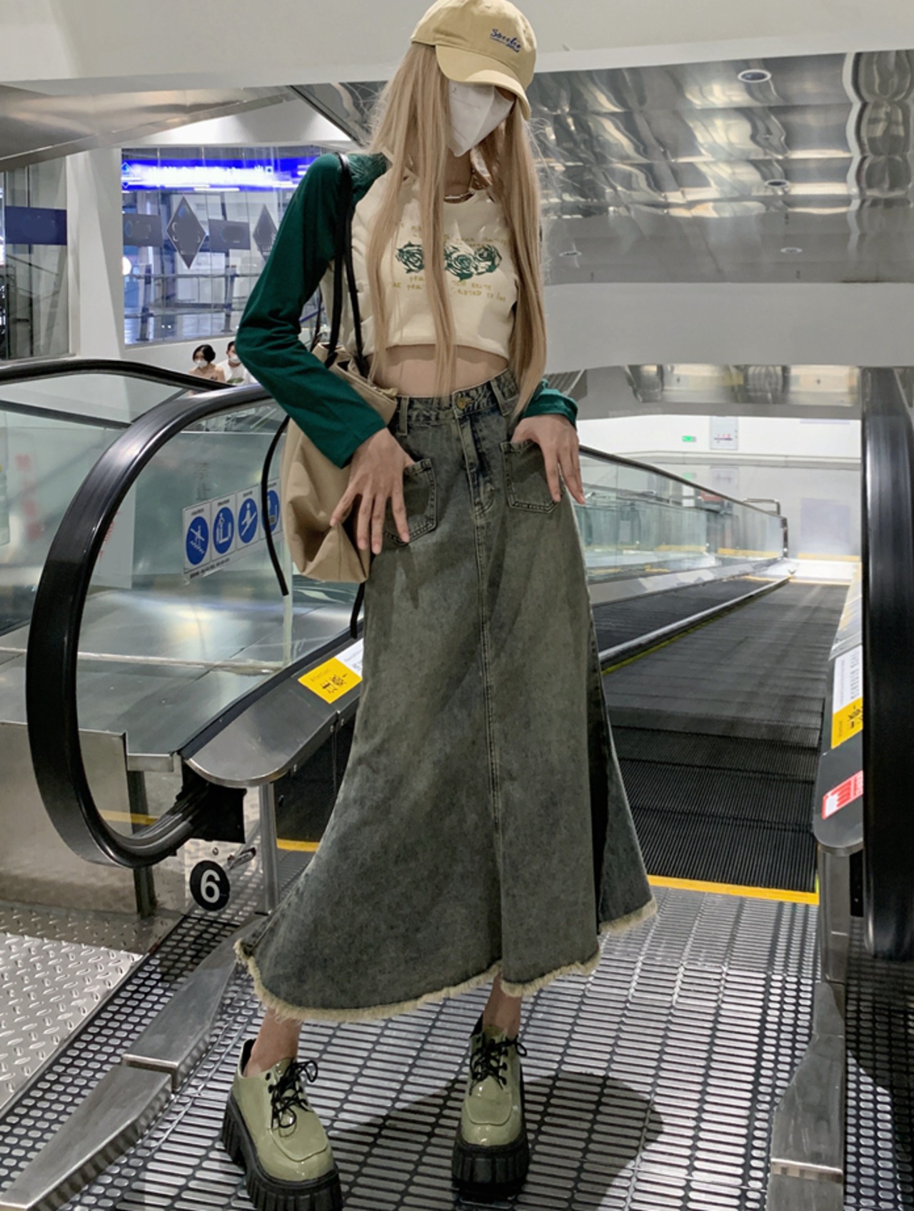 マーメイドライン レトロ デニム スカート ロング丈 きれいめ カジュアル おしゃれ こなれ感 ラフ シーズンレス 通勤 通学 お出かけ 着回し 普段使い S M L XL 2XL 3XL 4XL 青 ブルー AS10321