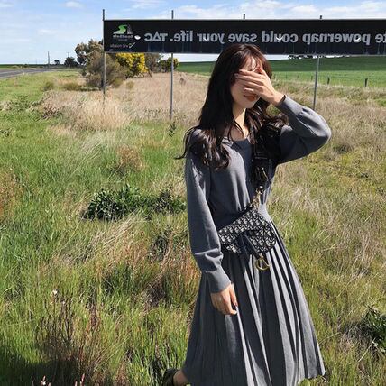 ワンピース ニットワンピ 膝下 ミモレ丈 袖あり 長袖 スリム Aライン プリーツ ニット かわいい 大人可愛い きれいめ シンプル カジュアル 大人 上品 お洒落 大人女子 キュート クール モード系 エレガント モダン 主役級 存在感 無地 春 秋 冬 20代 30代 40代 レディース ビジネス OL 通勤 学生 デート お出かけ 女子会 休日 インスタ映え S M L ピンク ブラック グレー オレンジ