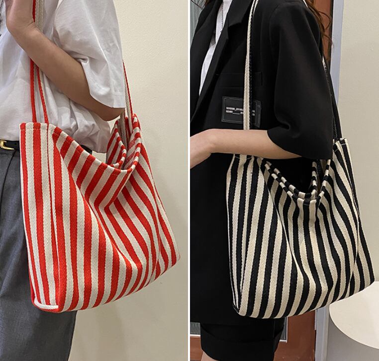 ストライプ柄 キャンバス シンプル トートバッグ 大容量 カジュアル おしゃれ こなれ感 メンズライク 通勤 通学 お出かけ アウトドア 旅行 普段使い AS10348