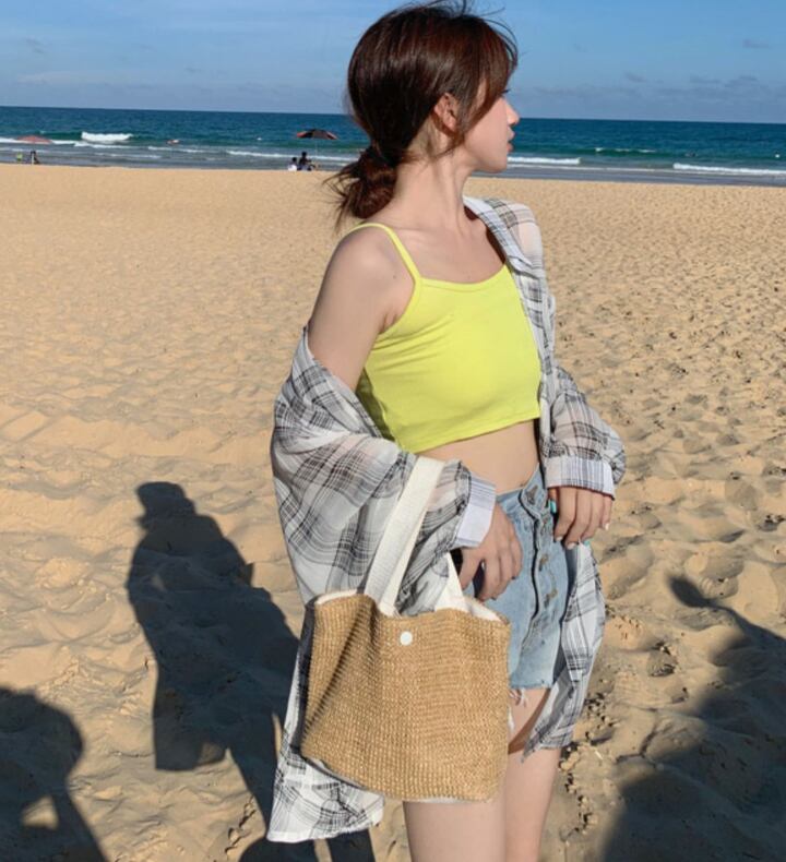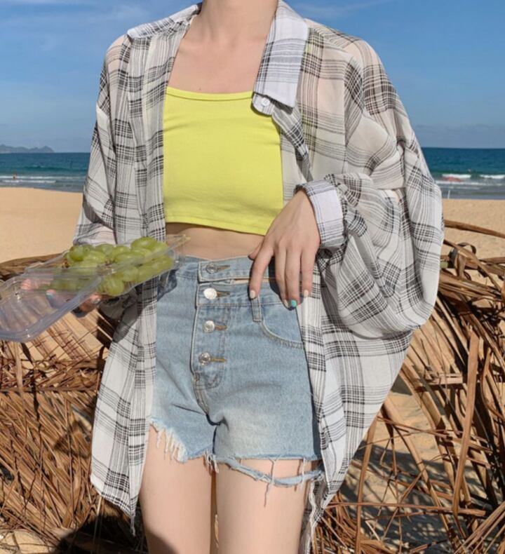 タンクトップやキャミソールと合わせて、さらりと涼しくトレンドスタイルに。