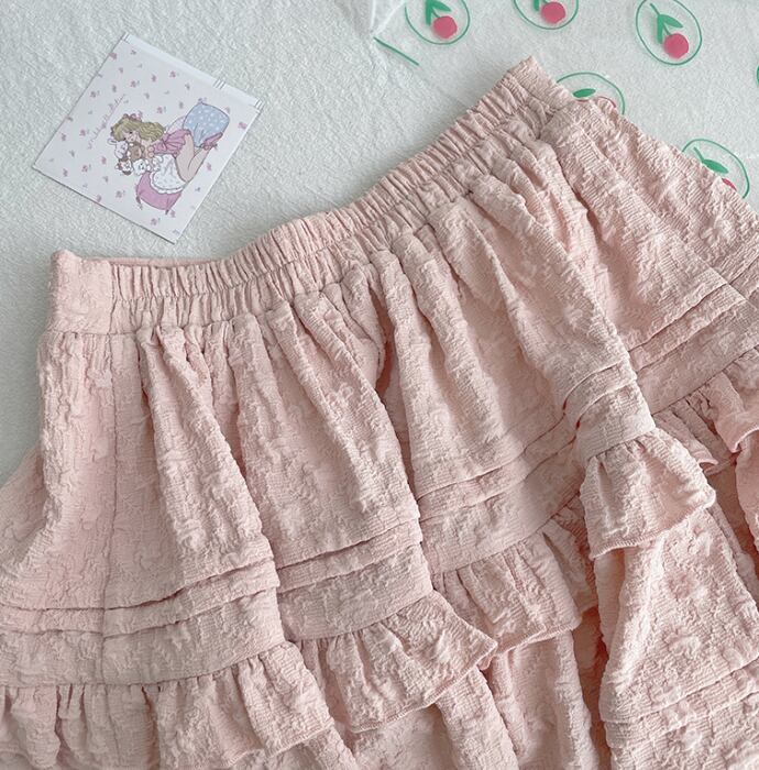 フリル ケーキスカート ピンク ミニ丈 フレア かわいい レトロ ラブリー キュート ガーリー 主役級 デート お出かけ モテ 美脚 脚長 S M AS10356