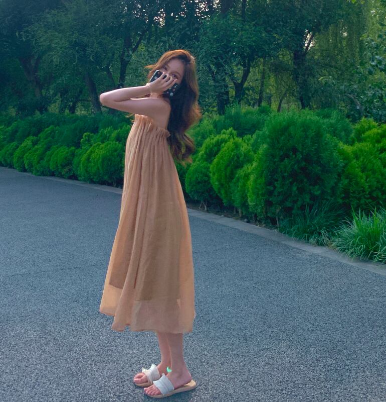 プリーツデザイン キャミソールワンピース ビーチドレス ロング丈 フレア かわいい おしゃれ 大人可愛い キュート ガーリー セクシー 夏 パーティー リゾート 海 普段使い 楽ちん 体系カバー S M L AS10358