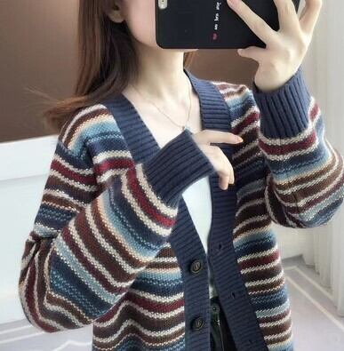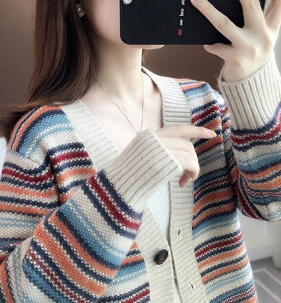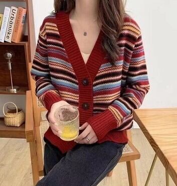 トップス アウター カーディガン 袖あり 長袖 萌袖 Vネック ストレート ニット 厚手 かわいい 大人可愛い シンプル カジュアル おしゃれ レトロ 大人女子 こなれ感 ラフ マニッシュ ラブリー キュート 主役級 ボーダー 春 秋 冬 10代 20代 30代 40代 レディース オフィス OL 通勤 学生 通学 デート お出かけ 女子会 お泊まり 休日 アウトドア 着回し S M L XL 2XL 3XL ブラック レッド ブラウン ベージュ ネイビー