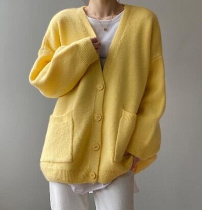ルーズなシルエットのカラバリ豊富なニットカーデ