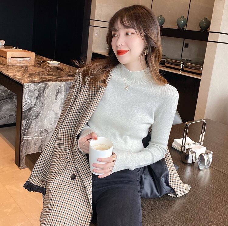 ハイネックで首元暖かく、程よくタイトで美シルエットなアイテムです。カラバリ豊富で色違いで持っていたい1枚。