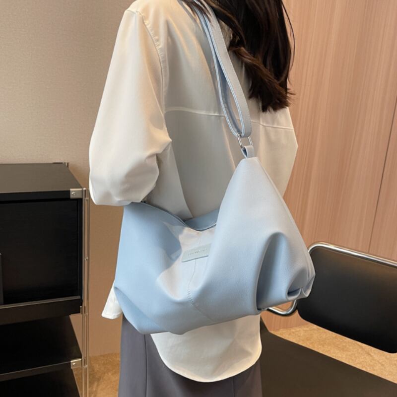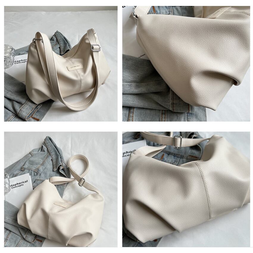 シンプル PU ショルダーバッグ レディースバッグ 斜めがけ 肩がけ 合皮 上品 おしゃれ 大人女子 こなれ感 無地 通勤 通学 お出かけ 黒 ブラック 青 ブルー ピンク クリーム AS10388