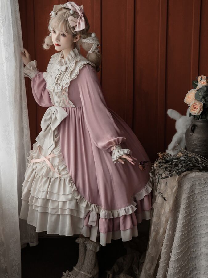 ロリータ クラシック クラロリ 甘ロリ レトロ フリル リボン ワンピース 長袖 ロング丈 かわいい キュート ガーリー 個性的 主役級 存在感 お出かけ パーティー イベント S M L AS10396