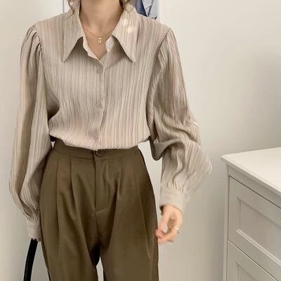 トップス シャツ ブラウス 袖あり 長袖 Vネック 襟付き プリーツ 前開き きれいめ シンプル 大人 上品 おしゃれ お洒落 かっこいい レトロ ラフ メンズライク マニッシュ 無地 春 秋 10代 20代 30代 40代 50代 60代 レディース メンズ ペア 女性用 男性用 男女兼用 お出かけ 休日 ショッピング 着回し 普段使い 重ね着 お揃い 双子 ファッション コーデ スタイル モテ サイズ フリーサイズ ワンサイズ 色展開 白 ホワイト 青 ブルー カラバリ アプリコット