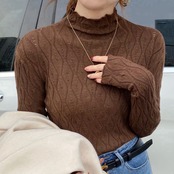型押し模様がかわいいハイネックのニットソー。
