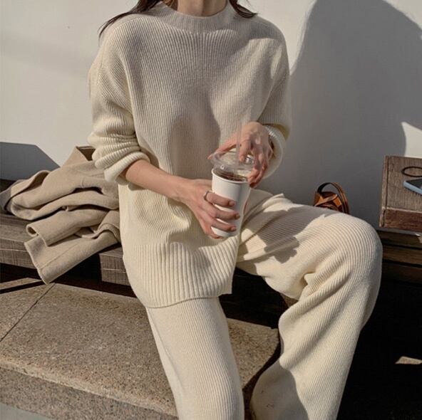 セットアップ ニットソー セーター ストレートパンツ カラーパンツ 袖あり 長袖 Uネック ラウンドネック ニット 厚手 裏起毛 カジュアル おしゃれ お洒落 かっこいい こなれ感 ラフ クール モード系 エレガント 無地 秋 冬 10代 20代 30代 40代 50代 60代 レディース 女性用 デート お出かけ 休日 着回し 普段使い 重ね着 お揃い 双子 モテ インスタ映え サイズ S M L XL 小さいサイズ 大きいサイズ 色展開 白 ホワイト 黒 ブラック 茶色 ブラウン ピンク カラバリ