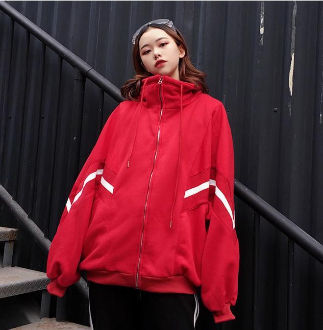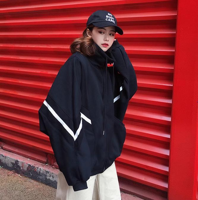 レディース アウター タートルネック スウェットシャツ ストライプカラー ドルマンスリーブ オーバーシルエット ビッグサイズ ジャケット TS15479