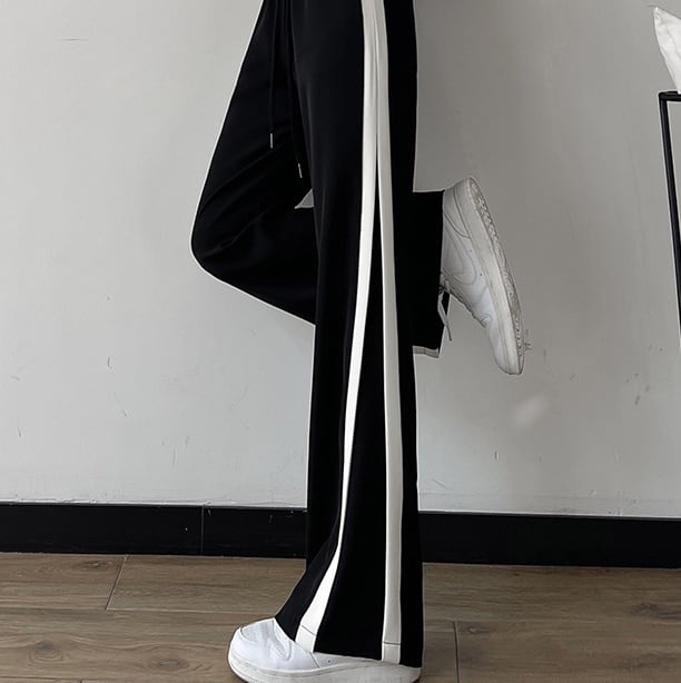 サイドラインが入ったフレアのカジュアルパンツ。