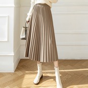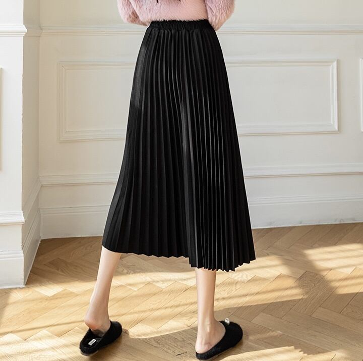 スカート ボトムス ロングスカート プリーツスカート フレアスカート ロング ロング丈 プリーツ ハイウエスト ウエストゴム かわいい 大人可愛い シンプル カジュアル 上品 おしゃれ お洒落 かっこいい レトロ ラフ キュート ガーリー 無地 春 秋 10代 20代 30代 40代 50代 60代 レディース 女性用 ママ お出かけ 休日 着回し 普段使い 重ね着 お揃い 定番 インスタ映え サイズ フリーサイズ ワンサイズ 色展開 黒ブラック 茶色 ブラウン 黄色 ベージュ イエロー カラバリ