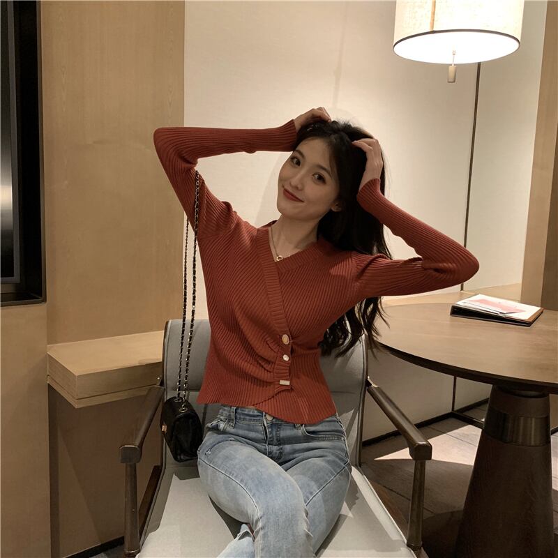 程よく身体にフィットし女性らしい印象のリブニットトップス。