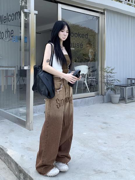 レディース アメリカン レターグラデーション ボトムス パンツ デニム カジュアル かっこいい ストリート 韓国系 ファッション KS10056