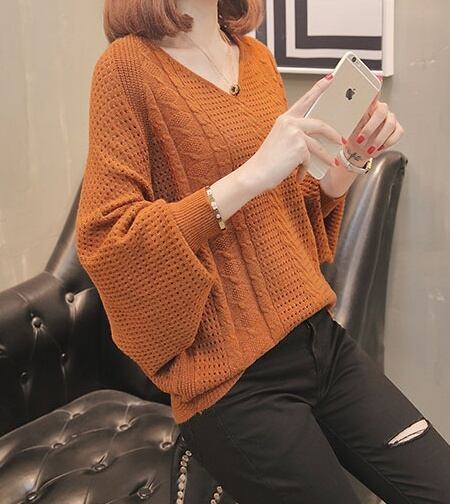 透かし編みで抜け感のあるお洒落なプルオーバーニットトップス。