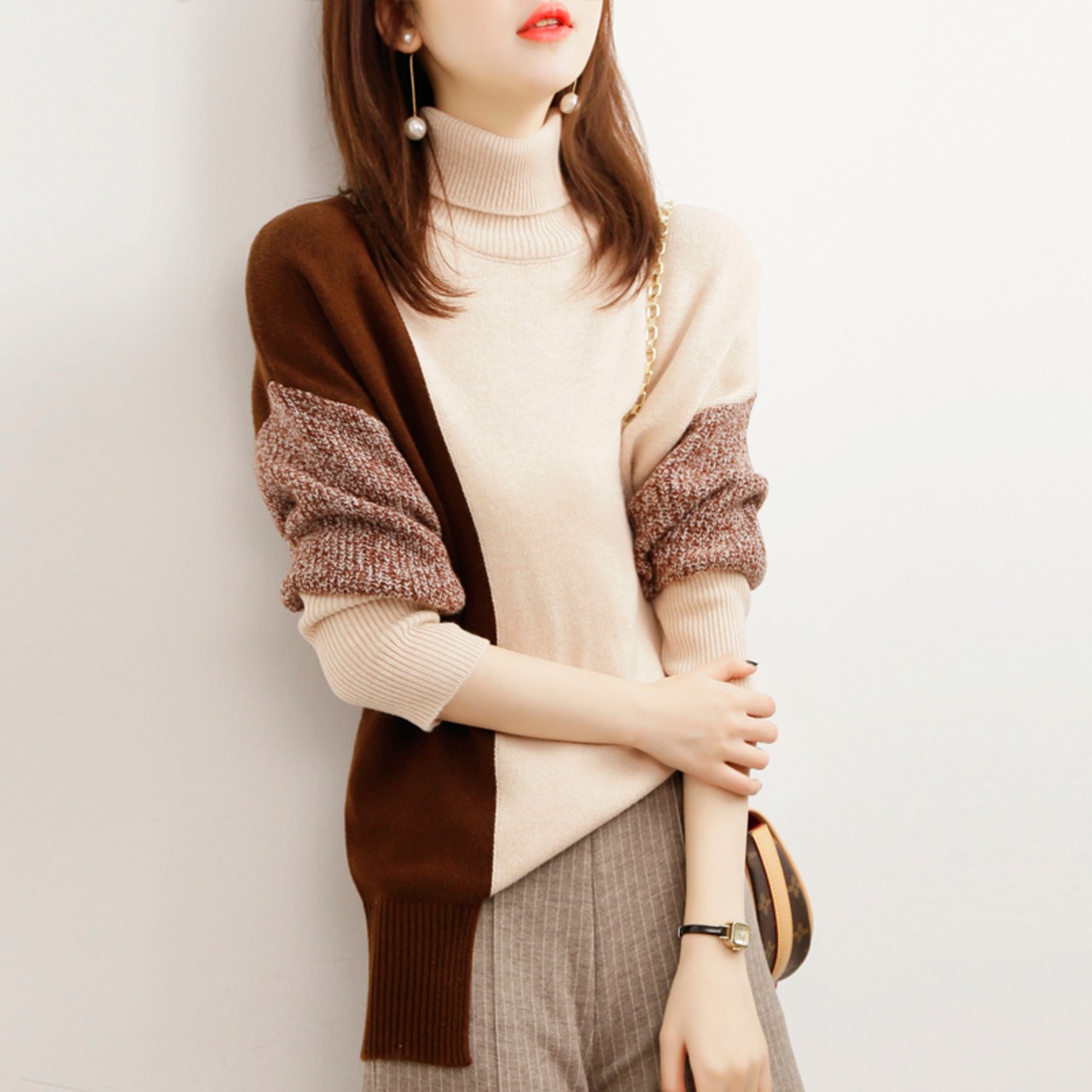 トップス バイカラー セーター プルオーバー ミドル丈 袖あり 長袖 タートルネック ルーズ オーバーシルエット ニット かわいい 大人可愛い きれいめ シンプル 大人 上品 お洒落 大人女子 ルーズ 個性的 クール エレガント 主役級 存在感 無地 秋 冬 10代 20代 30代 40代 50代 レディース ママ オフィス OL 通勤 学生 通学 デート お出かけ 公園デビュー アウトドア 旅行 着回し 普段使い 暖かい S M L XL ブラウン イエロー ネイビー