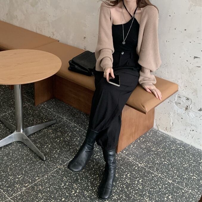 トップス ニットボレロ ボレロ カーディガン クロップド丈 袖あり 長袖 ボリューム袖 襟なし ワイド 前開き ニット 厚手 大人可愛い きれいめ シンプル カジュアル 大人 上品 お洒落 大人女子 こなれ感 ラフ ガーリー ルーズ 主役級 抜け感 無地 20代 30代 40代 ママ 通勤 学生 通学 デート お出かけ 女子会 休日 旅行 着回し 普段使い 重ね着 韓国系 楽ちん 暖かい 体系カバー 定番 トレンド 流行 インスタ映え S M L XL ゆったり カーキ ブラック グレー