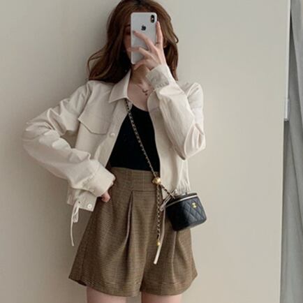 アウター ジャケット 上着 長袖 ショート丈 ポケット 前開きkスタンドカラー 薄手 かわいい 大人可愛い きれいめ シンプル カジュアル 大人 上品 おしゃれ かっこいい レトロ 大人女子 こなれ感 ラフ スポーティー ラブリー キュート 個性的 主役級 存在感 無地 春 秋 冬 10代 20代 レディース 女性用 学生 通学 デート お出かけ 女子会 お泊まり 休日 アウトドア 旅行 ホテル ショッピング 着回し 普段使い モテ ワンサイズ コーデ スタイル ファッション ホワイト カーキー