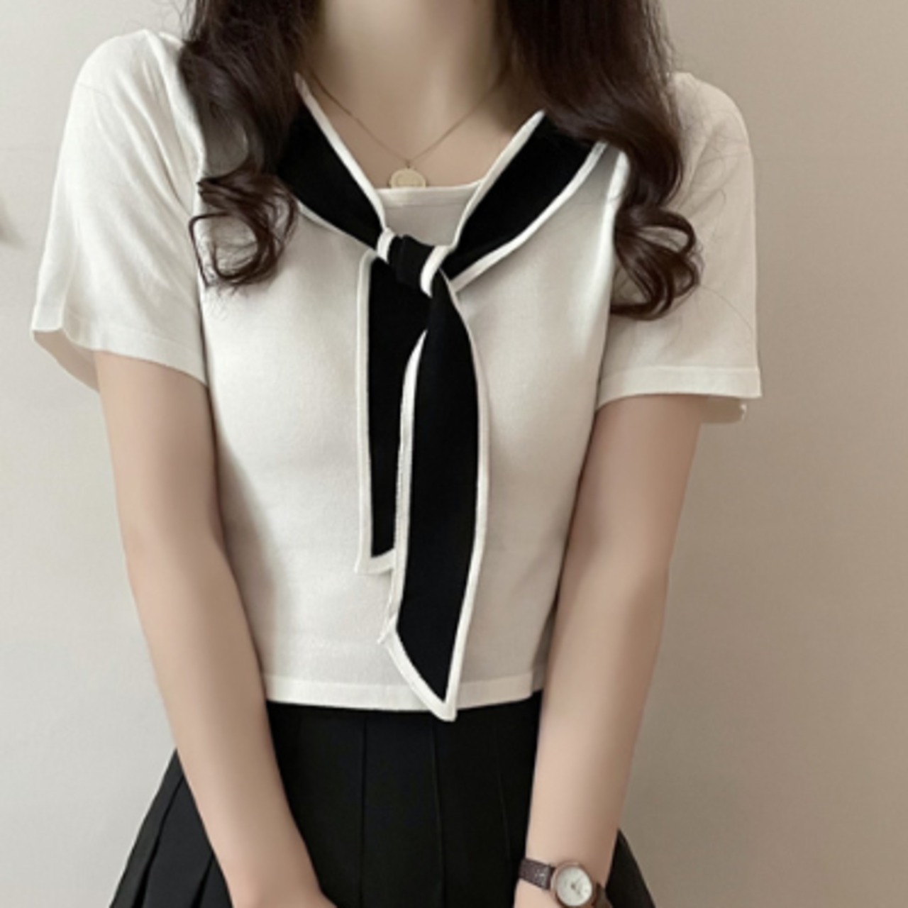 トップス カットソー ショート丈 半袖 スカーフ ネクタイ かわいい 大人可愛い きれいめ シンプル カジュアル 大人 上品 おしゃれ かっこいい レトロ 大人女子 こなれ感 メンズライク ボーイッシュ スポーティー キュート ガーリー 個性的 主役級 存在感 無地 春 夏 レディース 女性用 10代 20代 デート お出かけ 女子会 お泊まり 休日 着回し 普段使い リゾート 旅行 海 プール 高原 レストラン ホテル モテ ワンサイズ ファッション コーデ スタイル ブラック ホワイト グレー