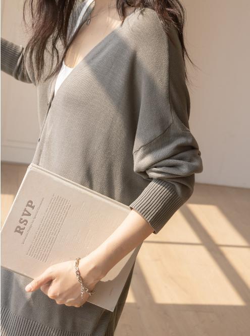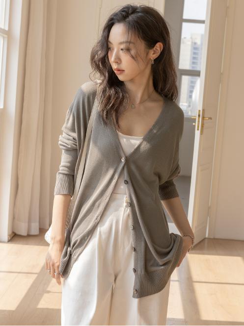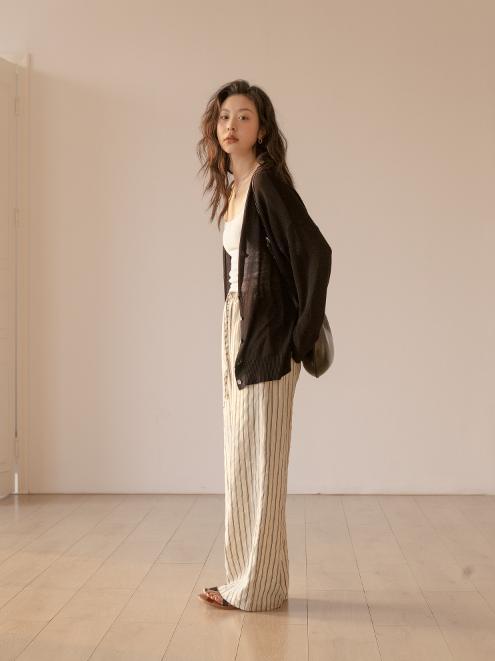 リネンに似せた薄手の軽やかなニット生地で、春や秋にはもちろん、夏の冷房対策にもおすすめです。