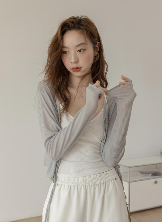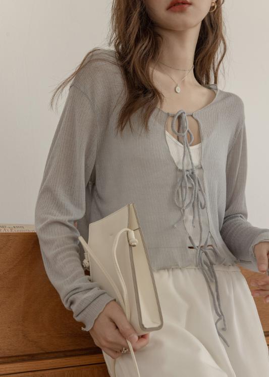 レディース トップス シアー ボレロ カーディガン ショート丈 リボン 大人可愛い お洒落 こなれ感 オルチャン ファッション コーデ KS10087