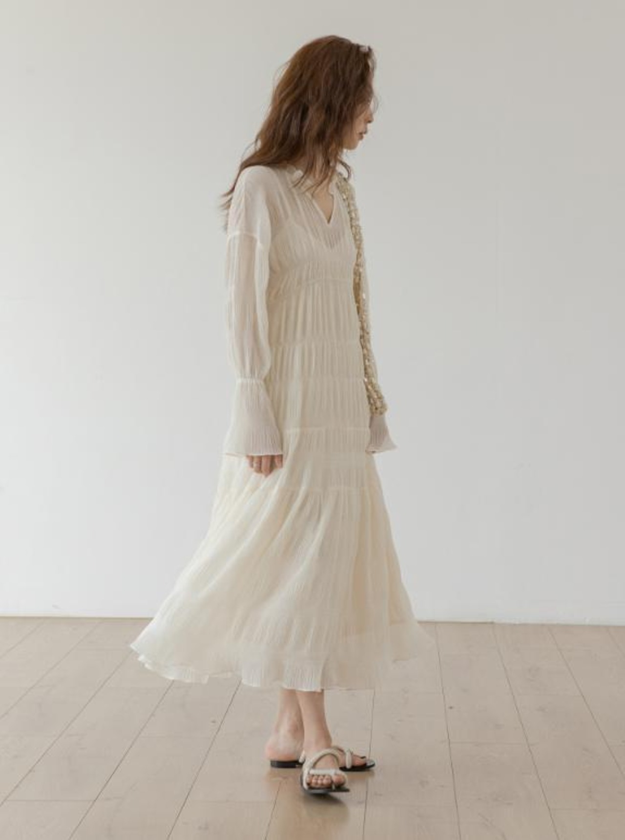 絶妙な透け感で大人っぽい印象のロングワンピース。