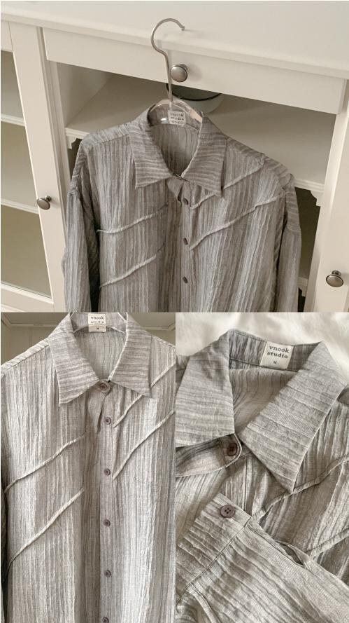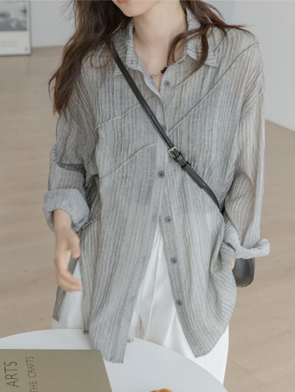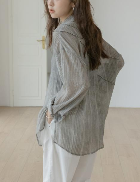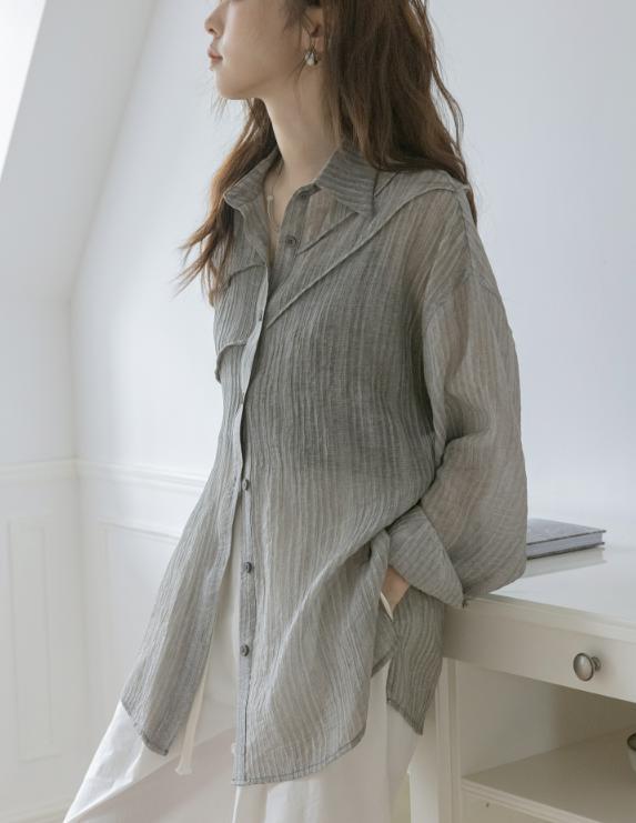 レディース トップス デザイン シアーシャツ ロング丈 長袖 カジュアル お洒落 KS10100