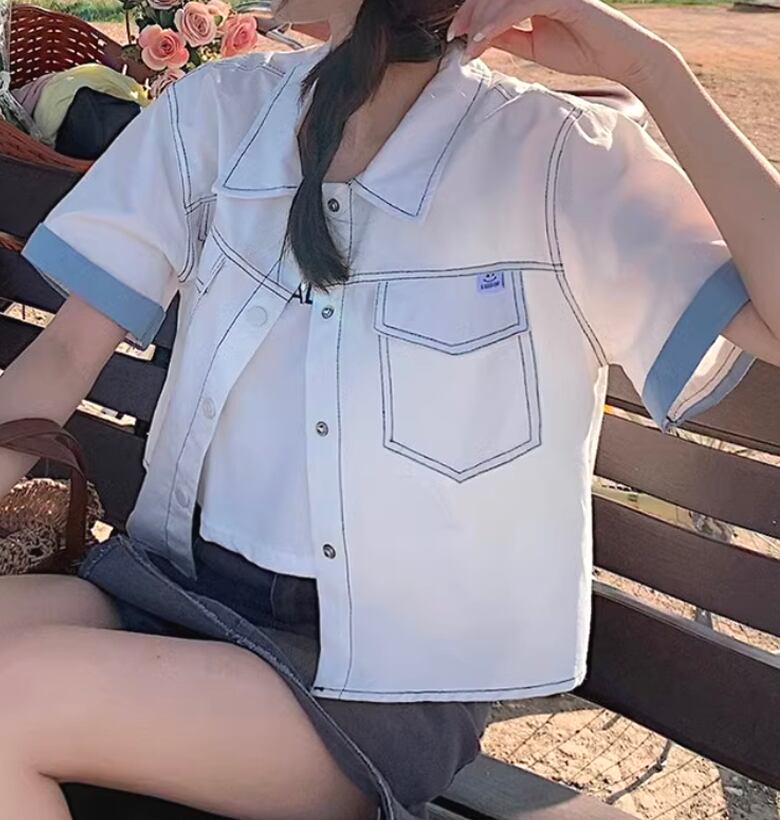 ショート丈 シャツトップス 半袖 シンプル おしゃれ かっこいい こなれ感 ラフ 春 夏 通勤 通学 お出かけ アウトドア リゾート 旅行 着回し 普段使い 重ね着 楽ちん フリーサイズ 白 緑 グリーン AS10462