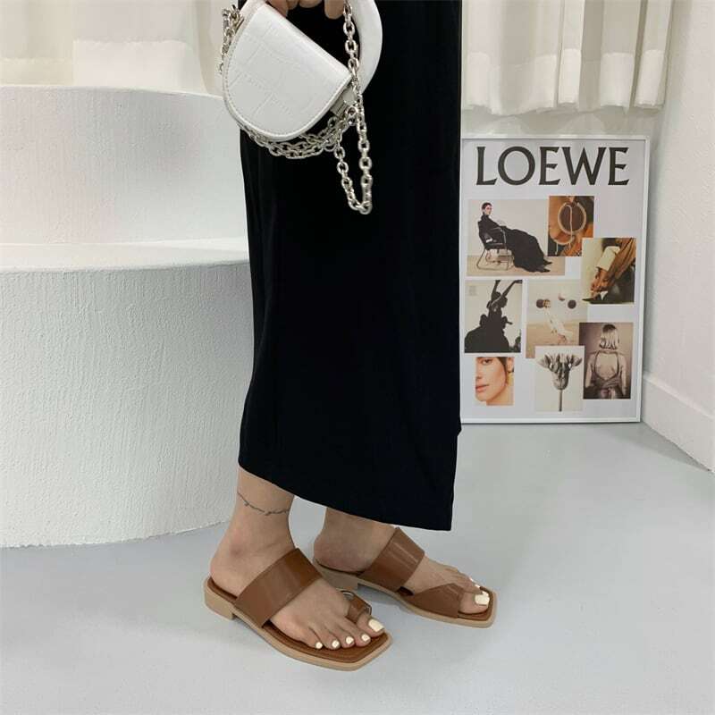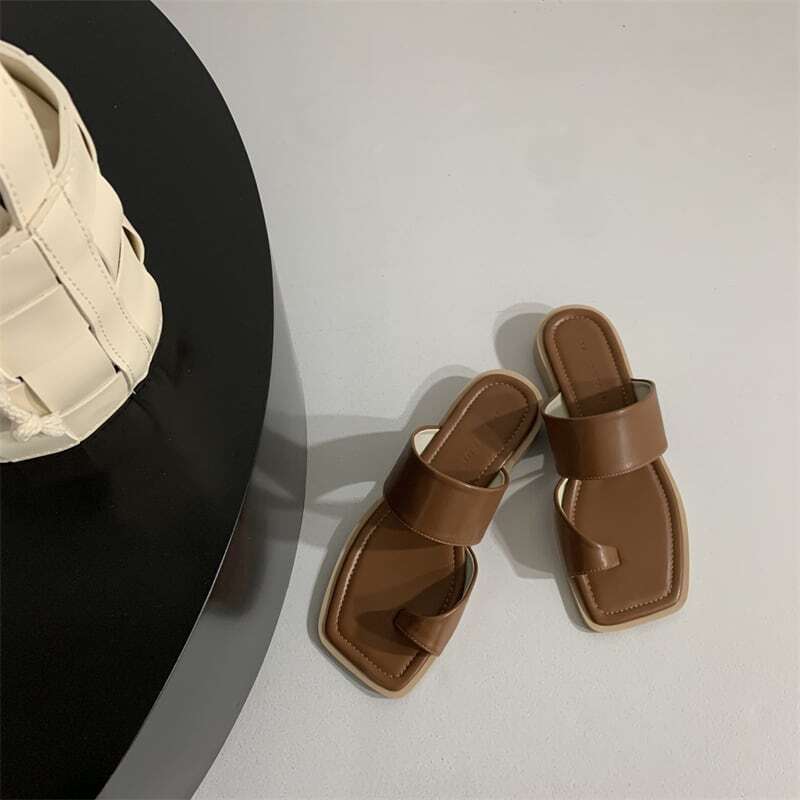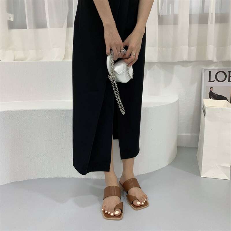 レディース バイカラー サンダル フラット トゥリングデザイン お洒落 エレガント リゾート ファッション KS10113