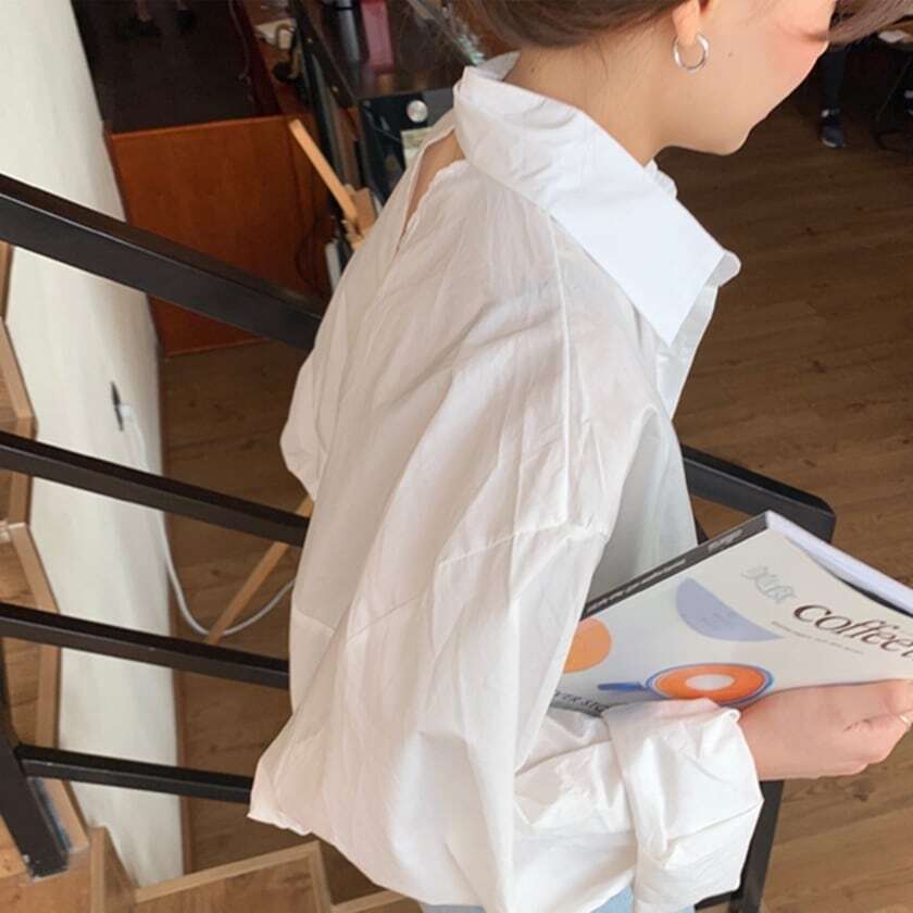 レディース トップス シャツ 白シャツ 長袖 ホルターネック Vカットデザイン シンプル カジュアル お洒落 KS10127