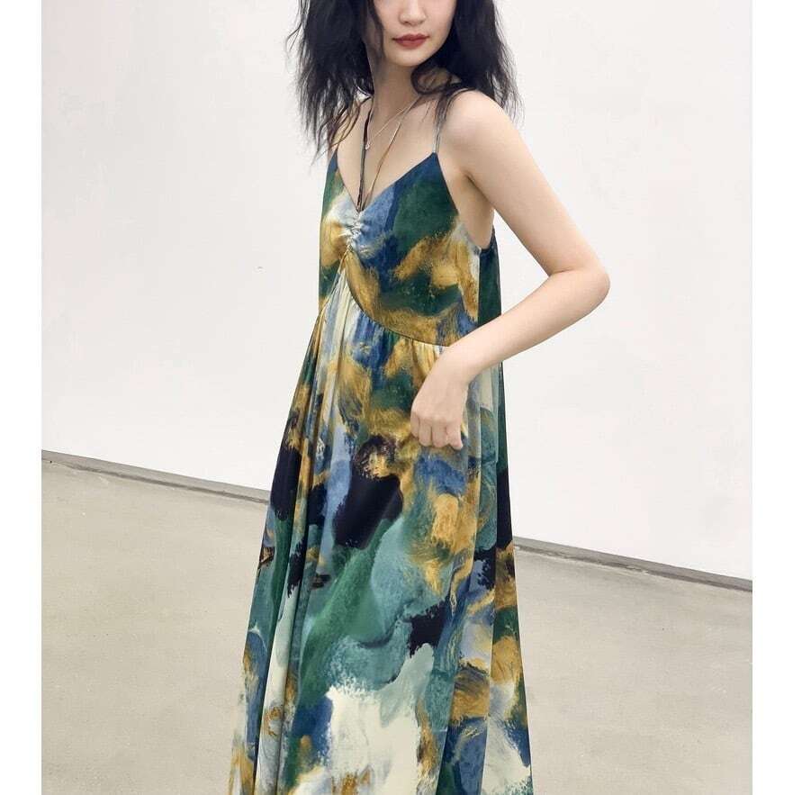 レディース キャミソール ワンピース ワンピドレス マキシ丈 ノースリーブ Vネック Aライン リゾート コーデ KS10131