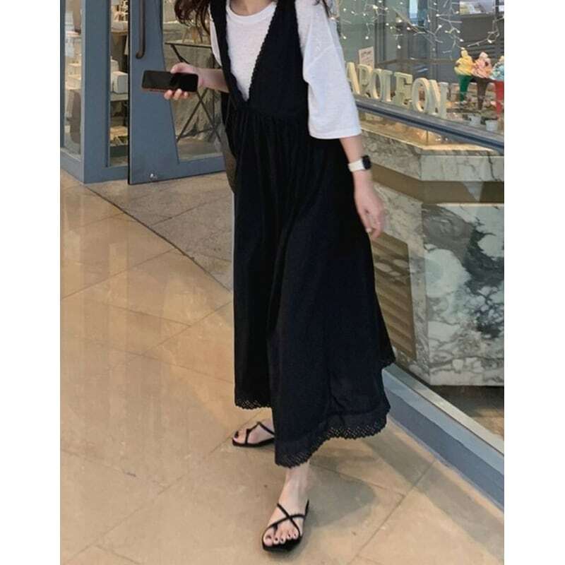 レディース ワンピース ジャンパースカート ジャンスカ エプロンスカート Vネック レースアップ 大人可愛い カジュアル お洒落 普段使い ホワイト ブラック 2Collar KS10163