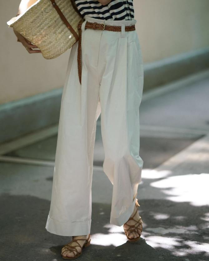 きれいめに穿きこなせるタック入りワイドパンツ。裾を折ってこなれ感のある足元をメイク。スタイルUPが期待できるハイウエストできれいめな要素もプラス。ボーダー柄のトップスと合わせればマリンな爽やかコーディネートが楽しめます!