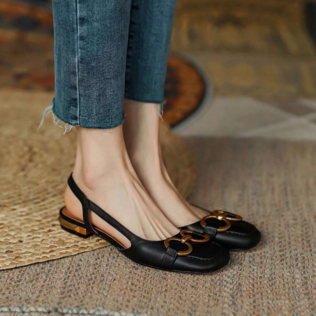 シンプルなデザイン性で、どんなコーデにも合わせやすくローヒールでありながら華やかな足元を演出します。
