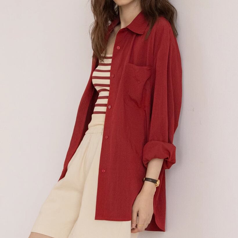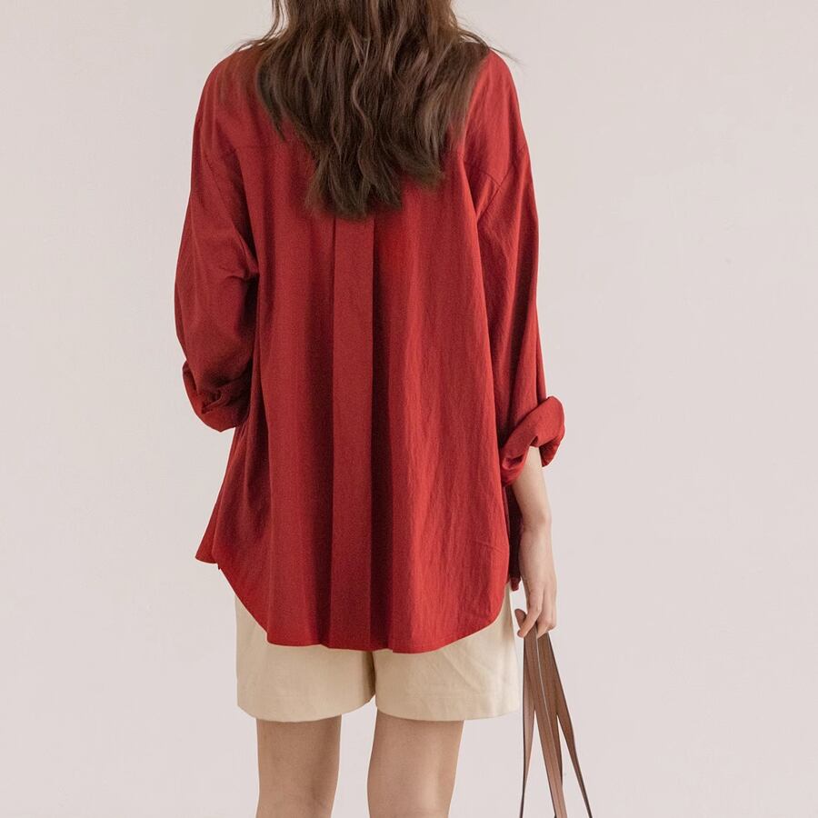 シャツ 長袖 おしゃれ お洒落 無地 シンプル こなれ感 春 夏 通勤 通学 お出かけ 普段使い S M L ピンク ホワイト 白 レッド 赤 ブラック 黒 AS10470