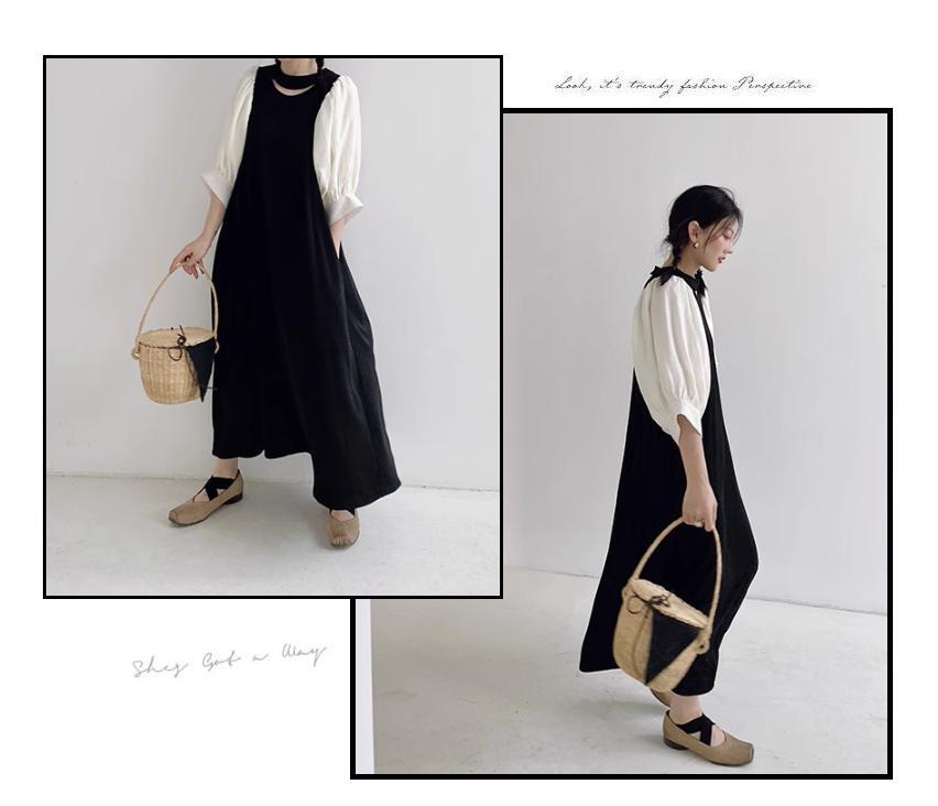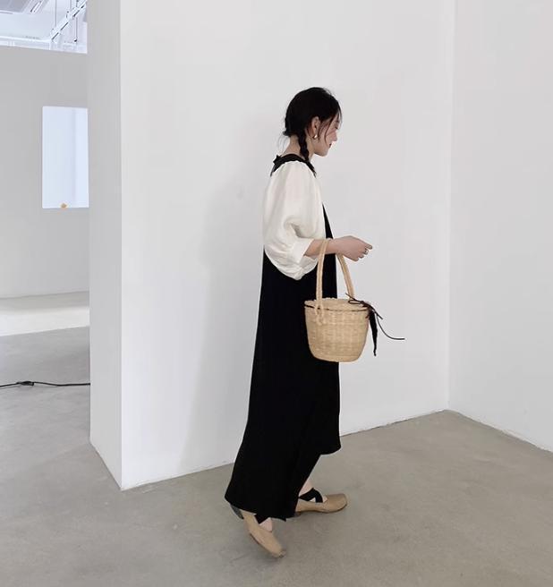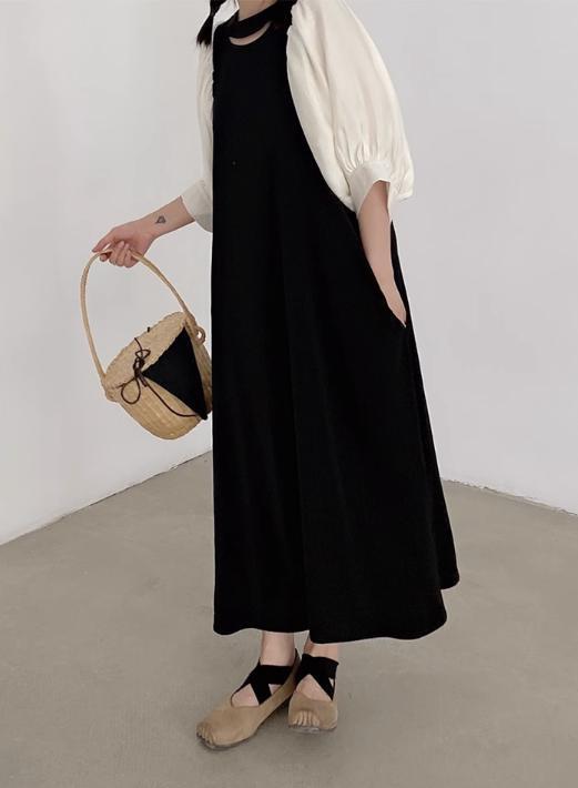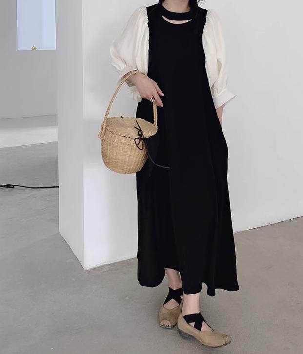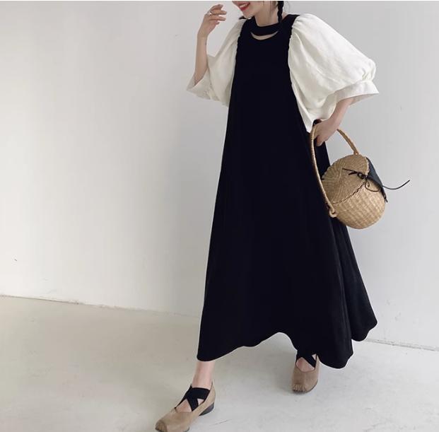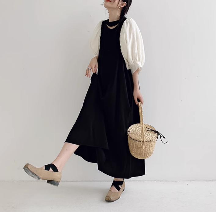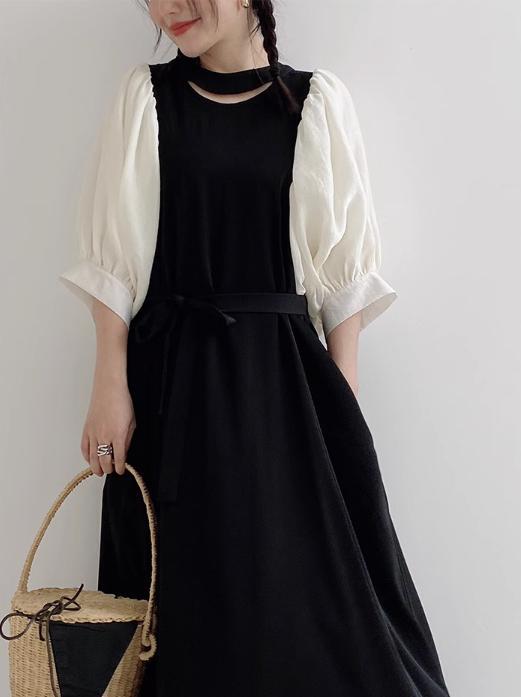 コントラストを効かせた配色に、ボリューム感のあるシルエットが可愛いワンピース。