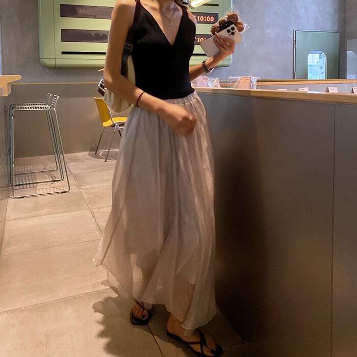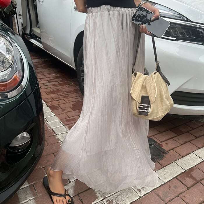 軽やかで柔らかな風合いが特徴的なロングスカート