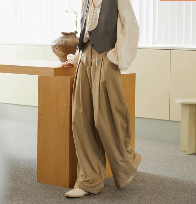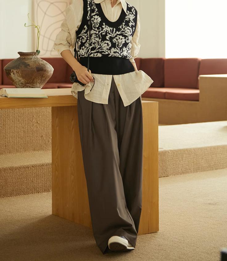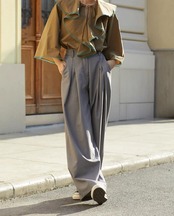 レディース ボトムス パンツ ワイドレッグパンツ フロントタック ルーズシルエット グレー カーキ コーヒー 3Collar KS10212