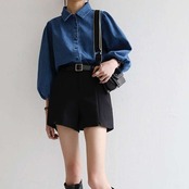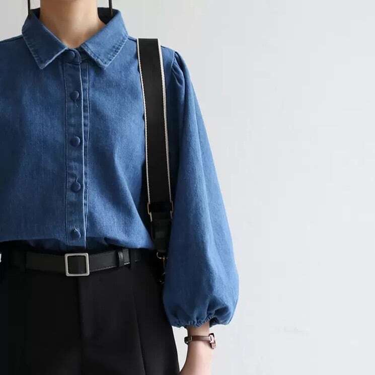 バルーン袖がこなれ感を演出してくれるデニムシャツ。