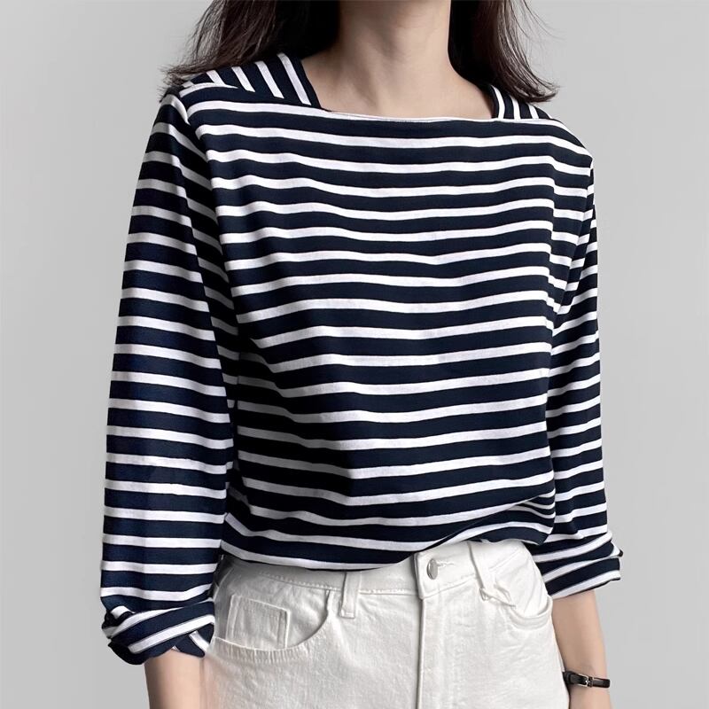 レディース ボーダー Tシャツ カットソー トップス 長袖 シンプル オーバーサイズ S M L XL 白 黒 ホワイト ブラック グレー AS10531