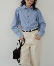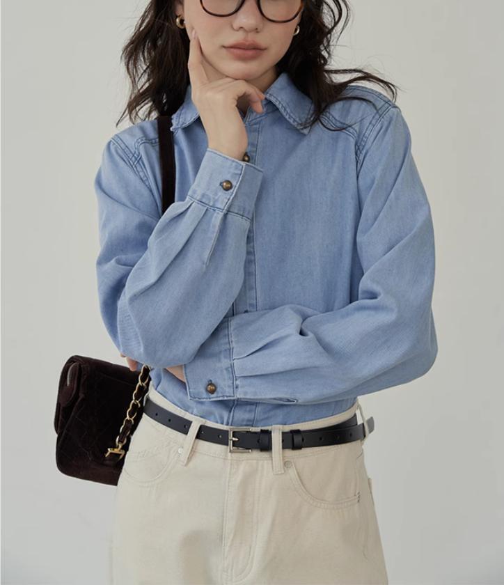 レディース トップス シングルブレスト ベーシック デニム シャツ ライトブルーKS10248