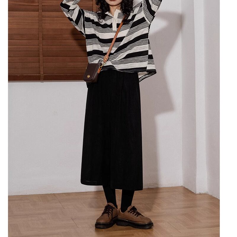 レディース レトロ コーデュロイ クロップド丈 パンツ ハイウエスト ワイドパンツ S M L 黒 カーキ ブラック AS10548