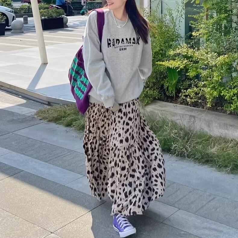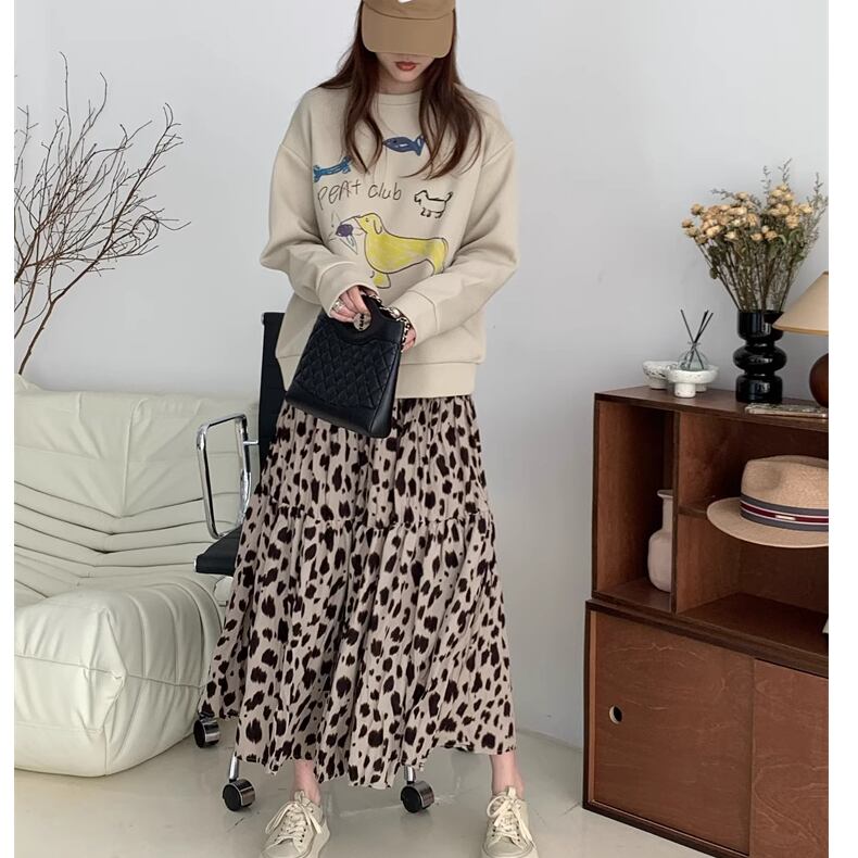 ヒョウ柄のロングスカート。