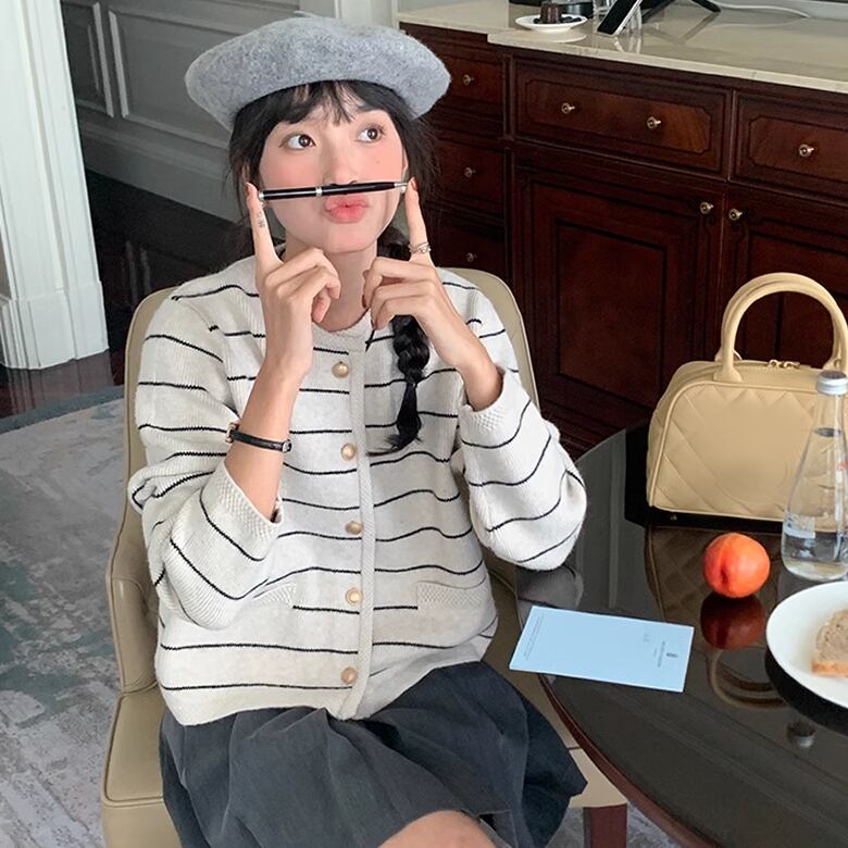 レディース ボーダー カーディガン きれいめ レトロ S M L ショート丈 AS10569