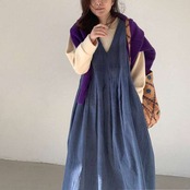 ブルーのコーデュロイが、優しく大人可愛い印象のワンピース。ロンTやハイネックニットなど、インナーに合わせるアイテム次第で違った雰囲気を楽しめる一着です。
