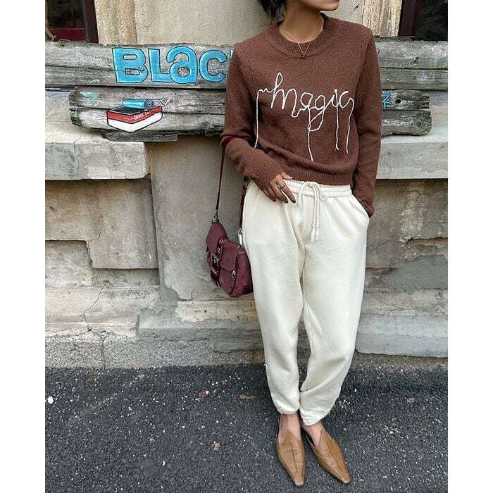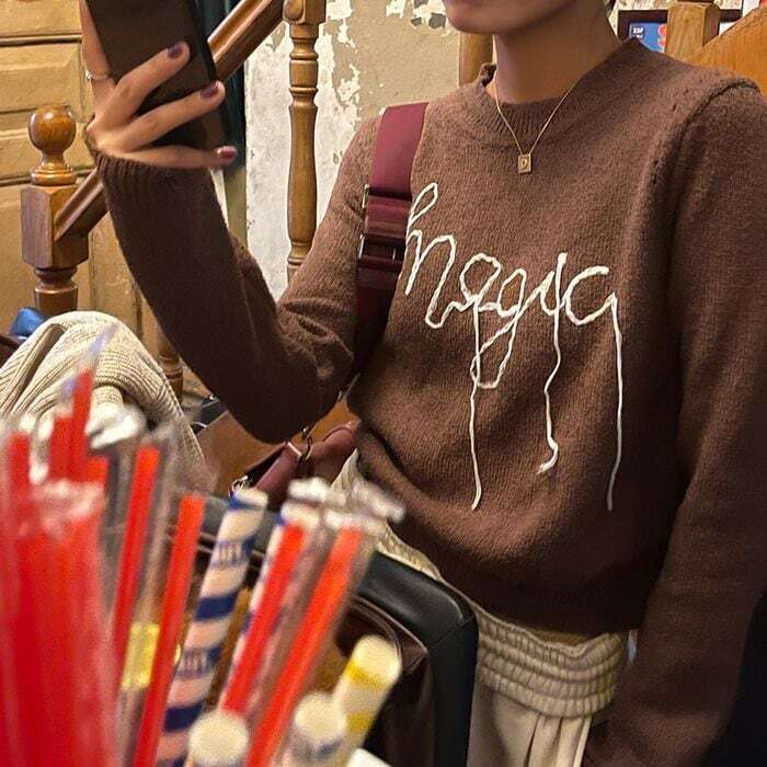レディース トップス レターステッチ ラウンドネック ニット セーター KS10261