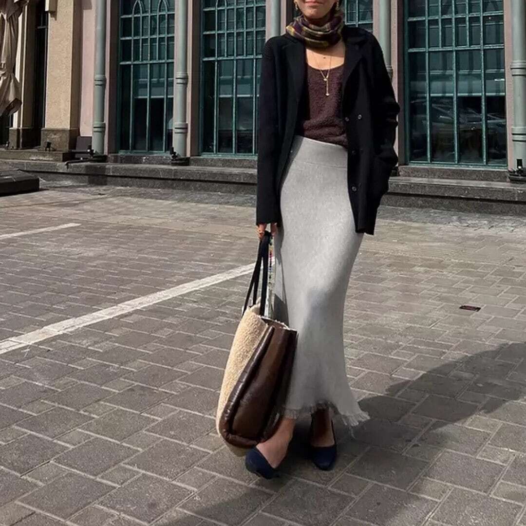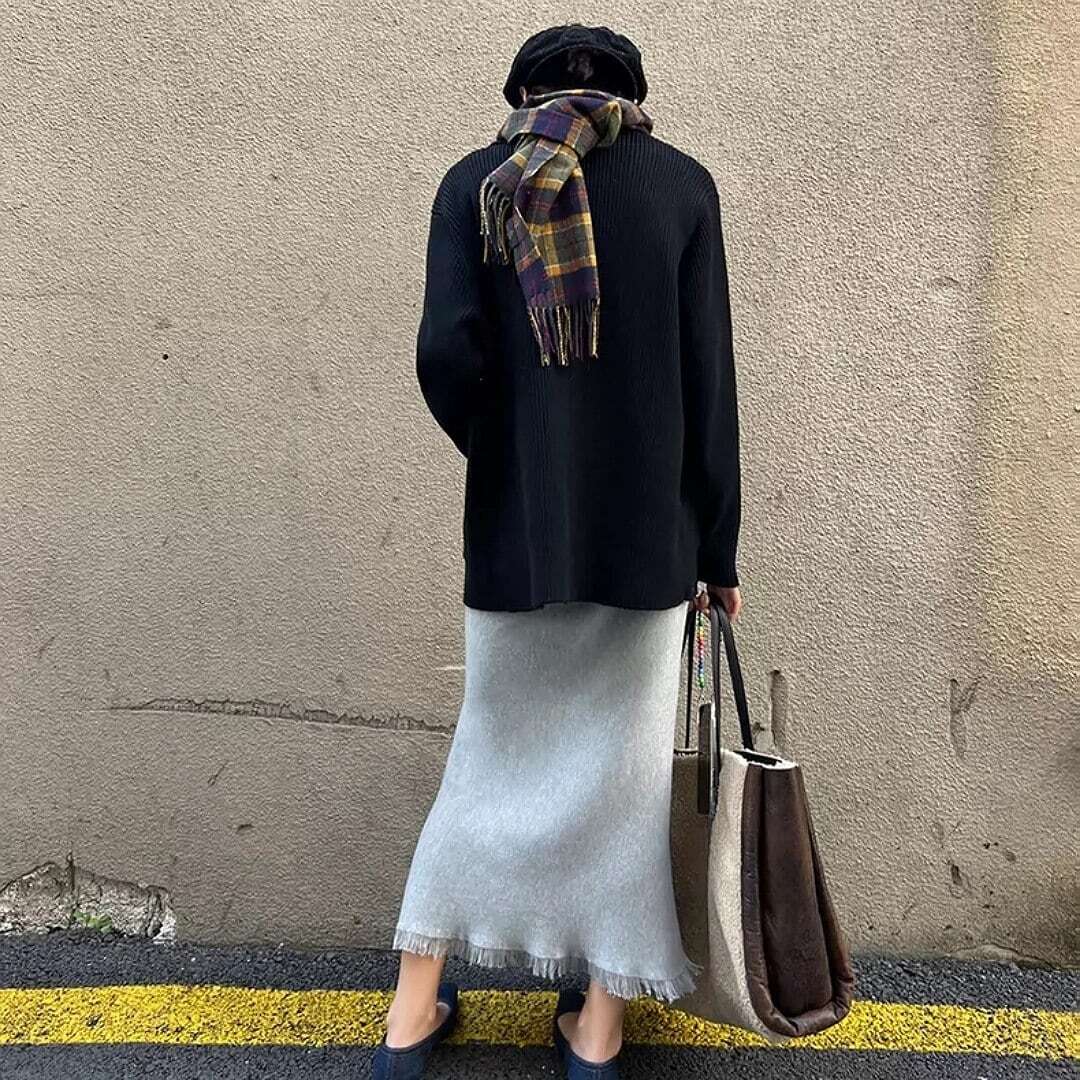 カットソーやニット合わせを女性らしくまとめてくれるアイテムです。